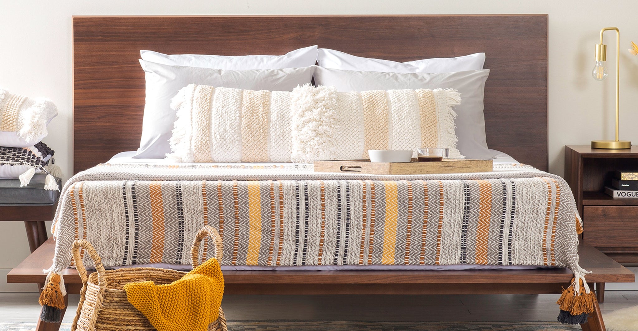 There’s nothing like an eye-catching wood bed to bring a warm vintage vibe to the bedroom. The ultimate complement to your mid-century decor, the Sienna bed frame has got it all—clean lines, a slim profile, elegant angled legs, and a walnut finish that screams cozy. We envision it topped with your grandmother’s heirloom quilt for a rustic vibe or a fluffy neutral duvet for a more modern look. Either way, instead of sheep, you’ll be counting all the ways the Sienna spiffs up your space.