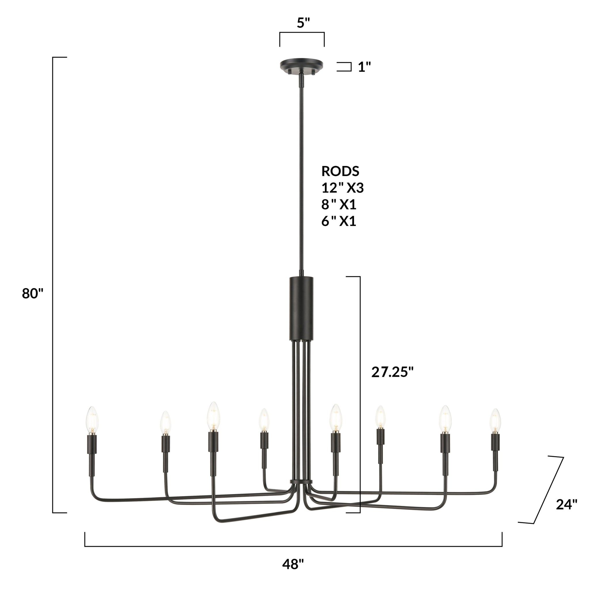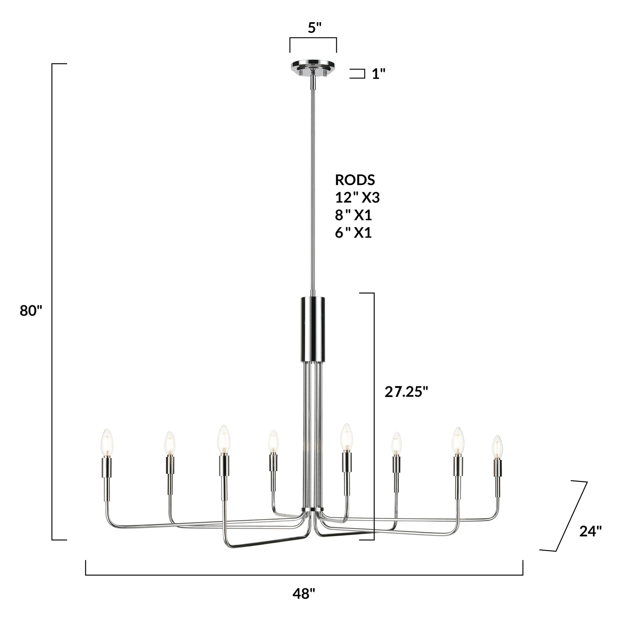 • Requires 8 E12 bulbs, 60W (sold separately)