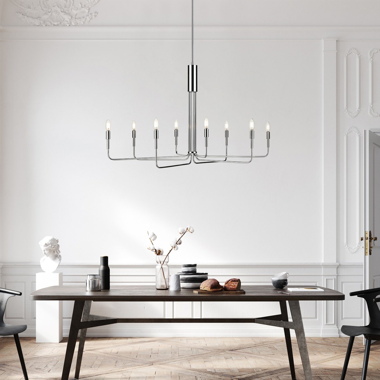 Inspired by old-world candelabras, the Bella 8-Light Chandelier conjures the glamour of a Parisian salon. Still, its simple silhouette and finish make it entirely at home in a contemporary setting. Hang it over your dining table or in the living room, and watch it cast a delightful spell.