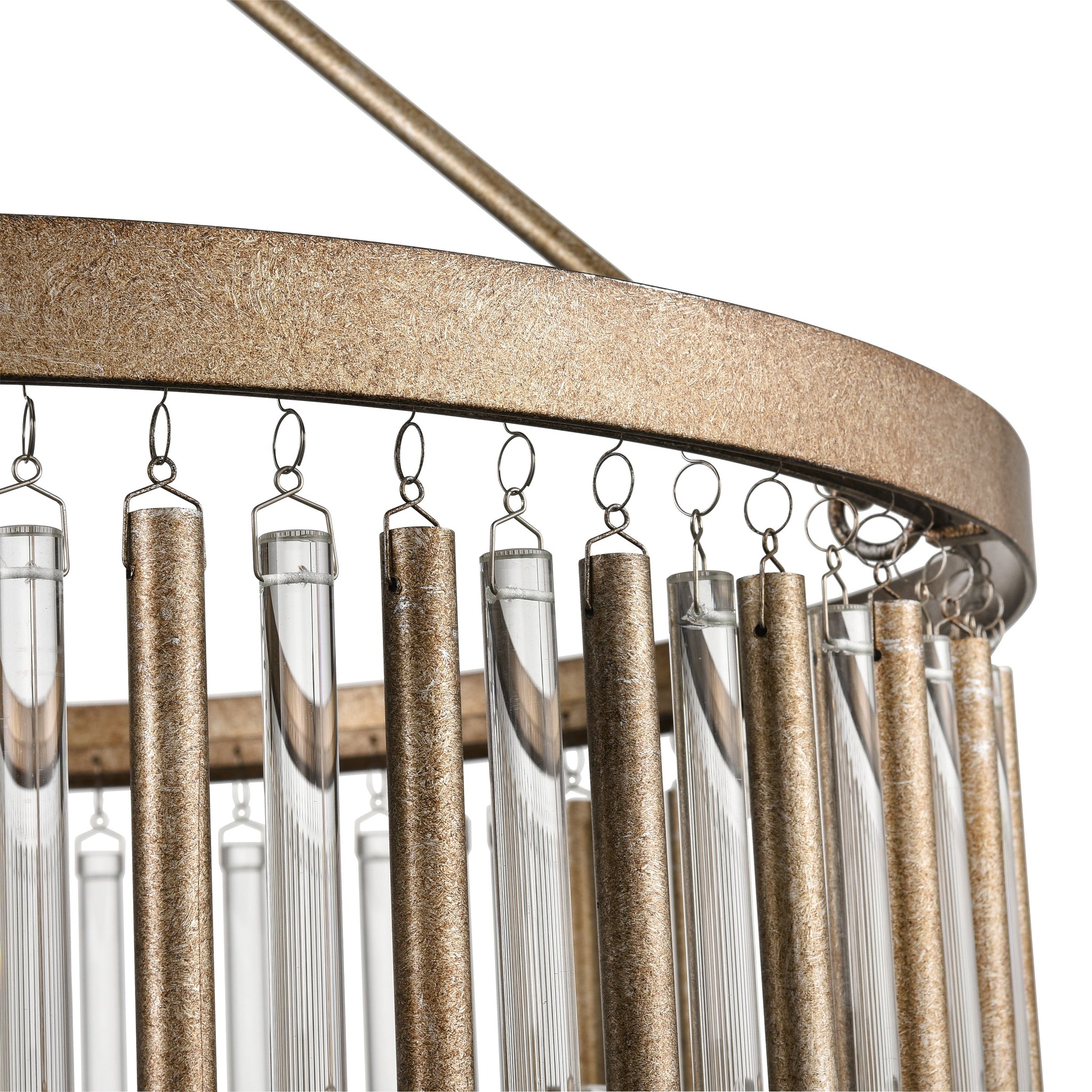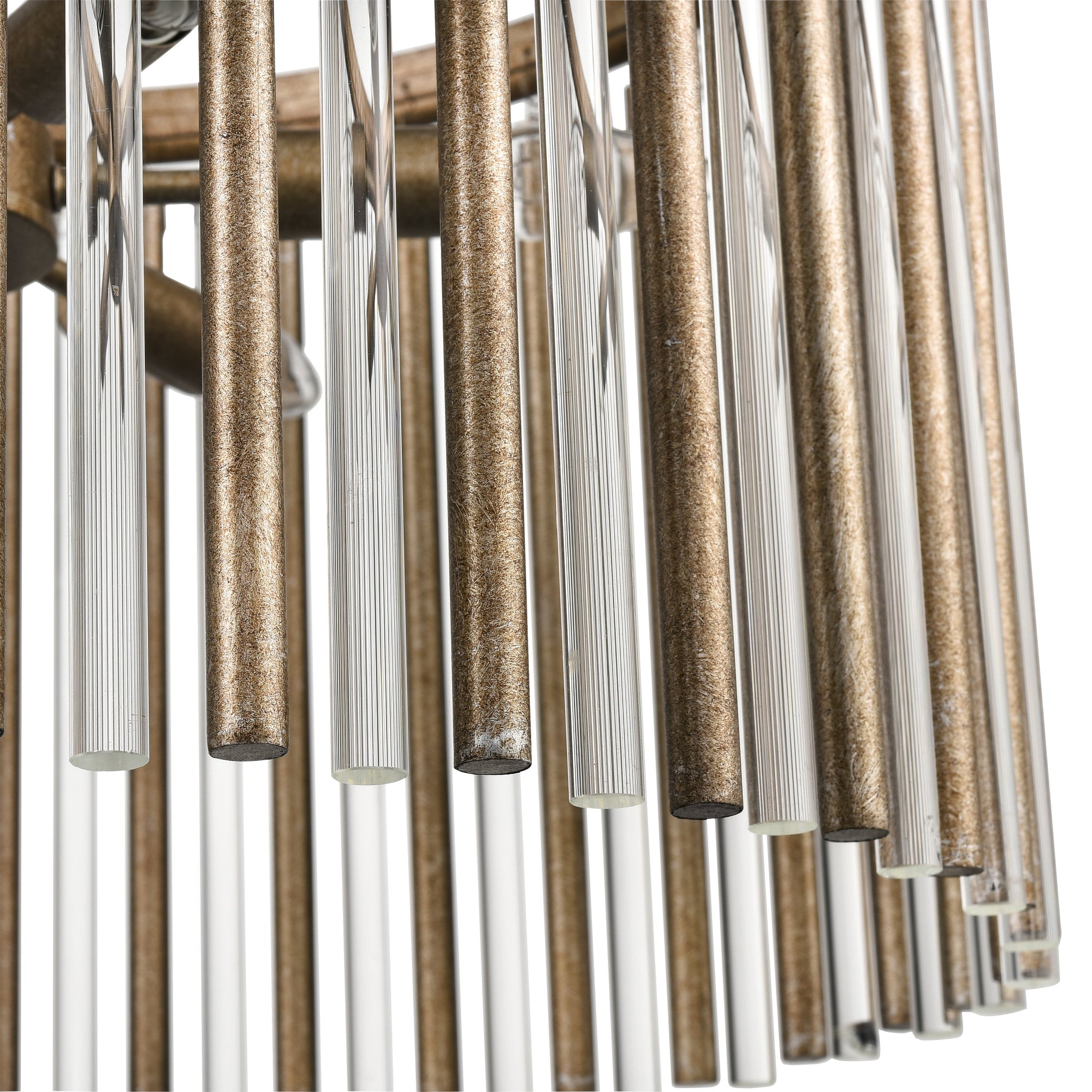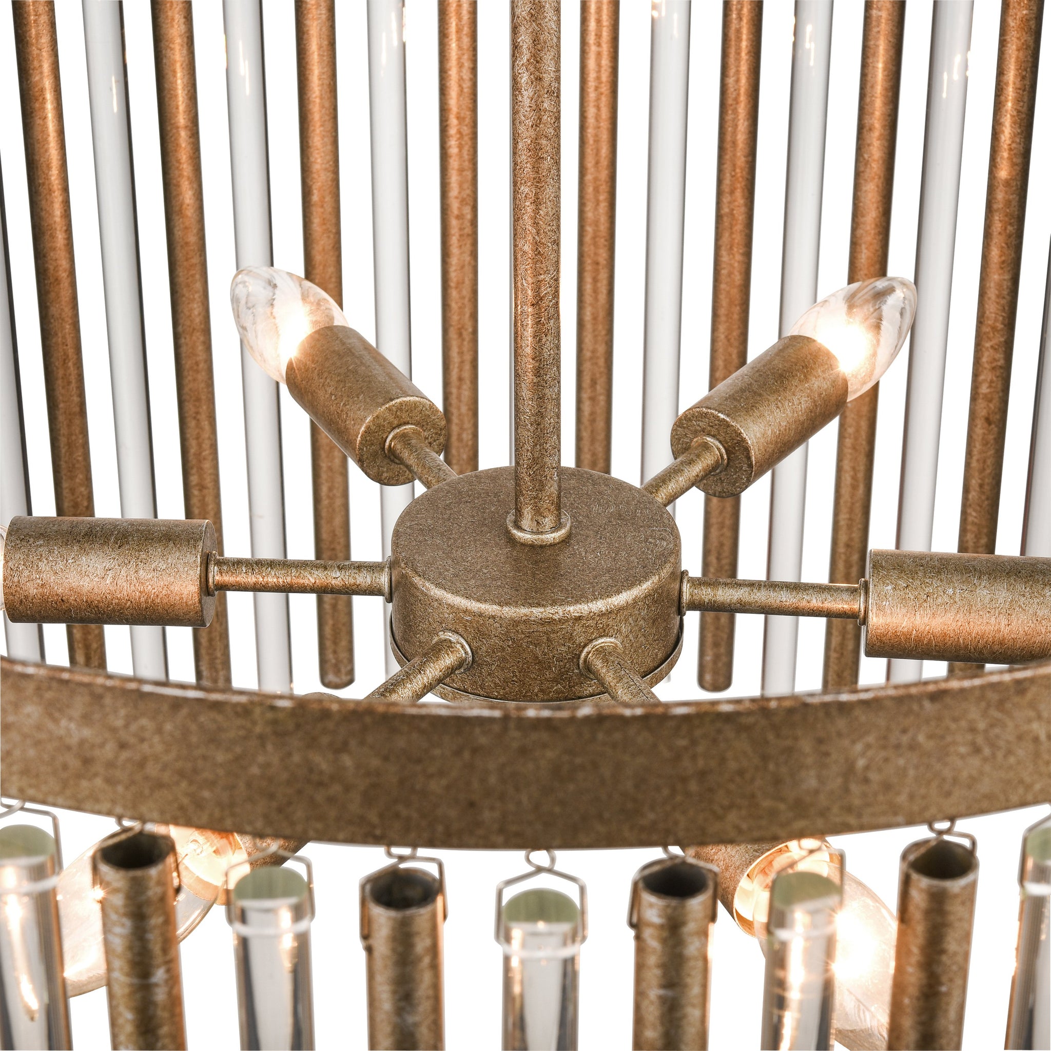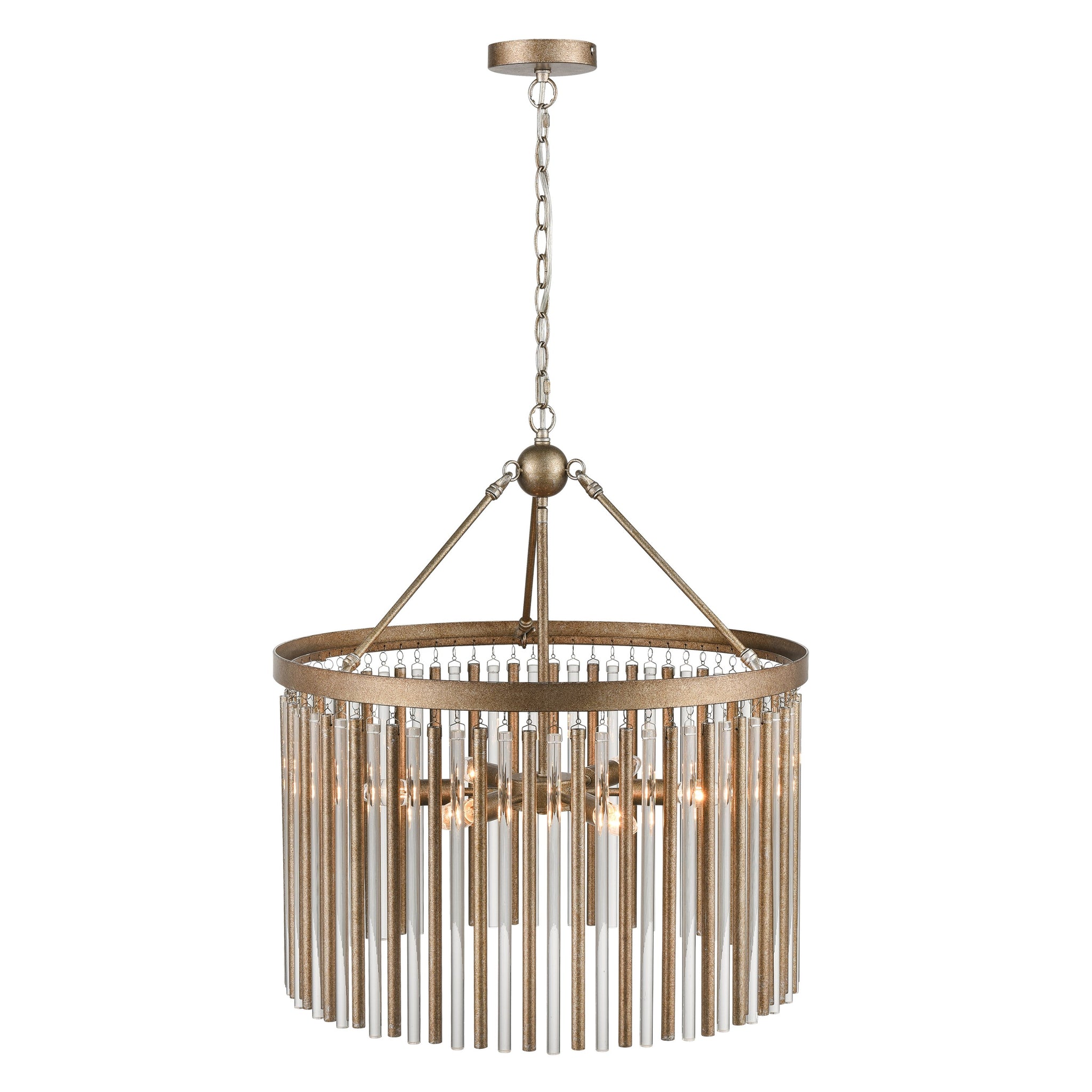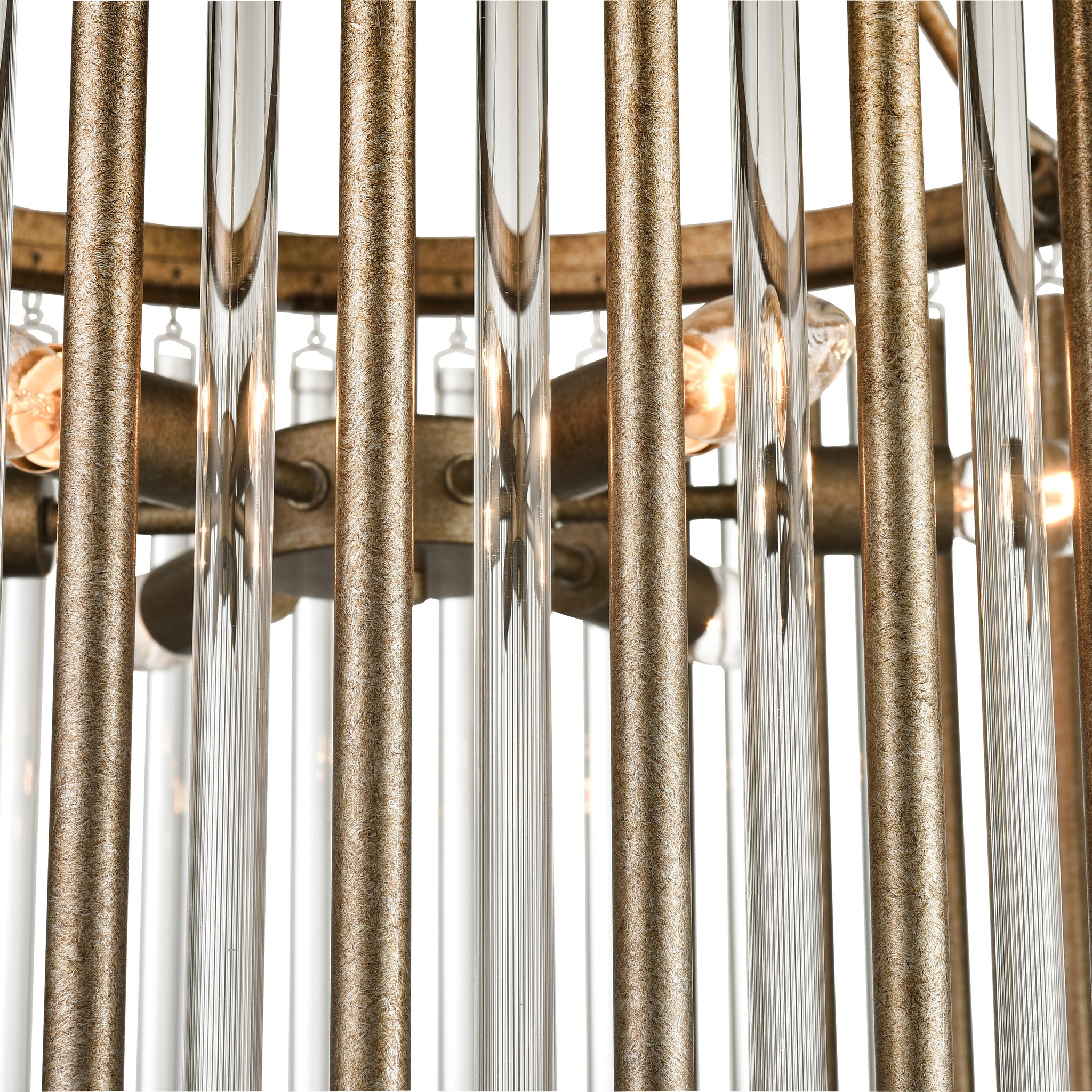 Impeccably styled and polished details are at the heart of our Elena Chandelier’s design. Alternating rods of crystal clear glass and antiqued brass create an appearance that’s elegant and dramatic all at once. Six lights shine through the glass, producing an amazing atmosphere— we see you hosting friends and family in your near future.