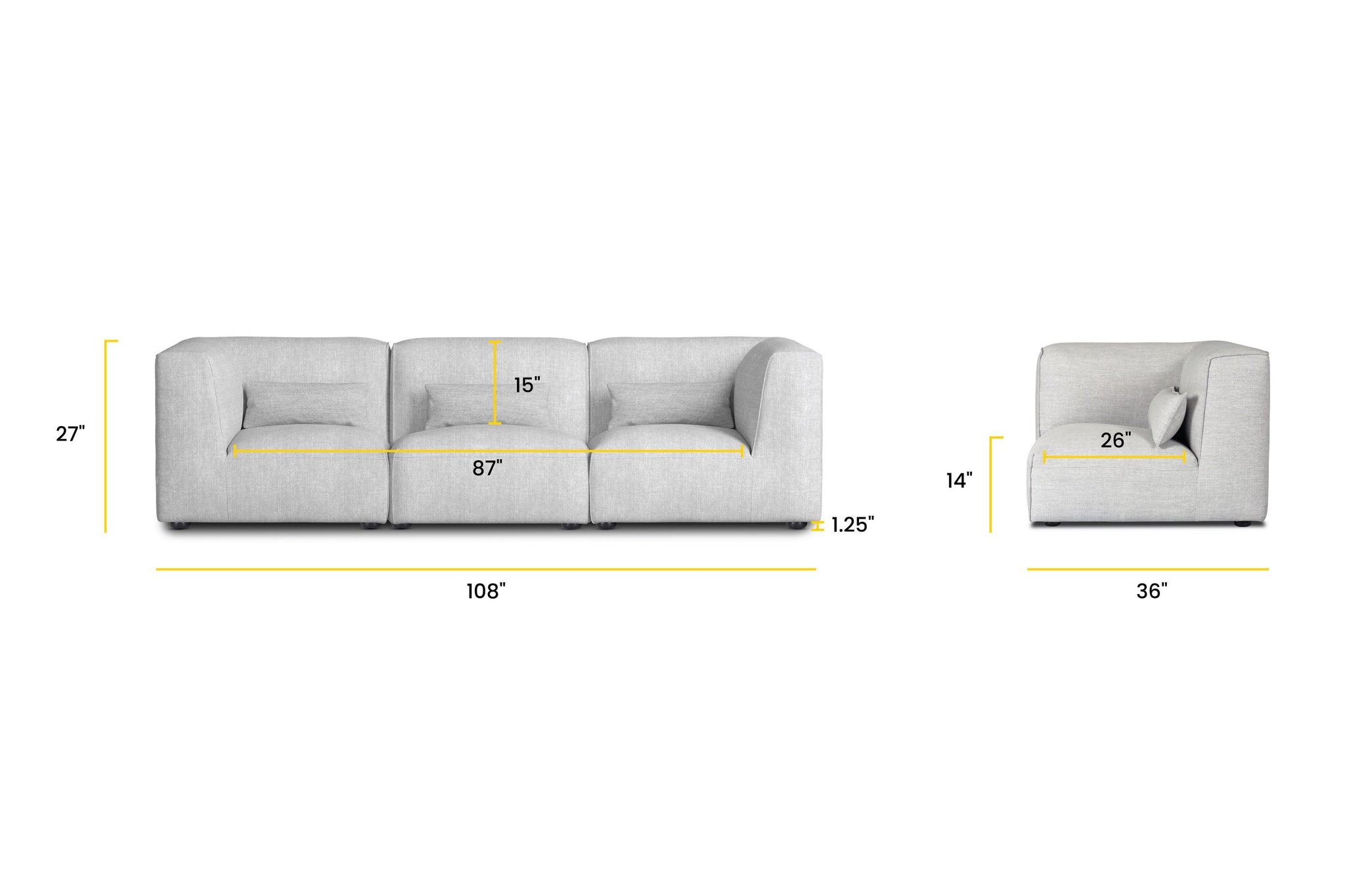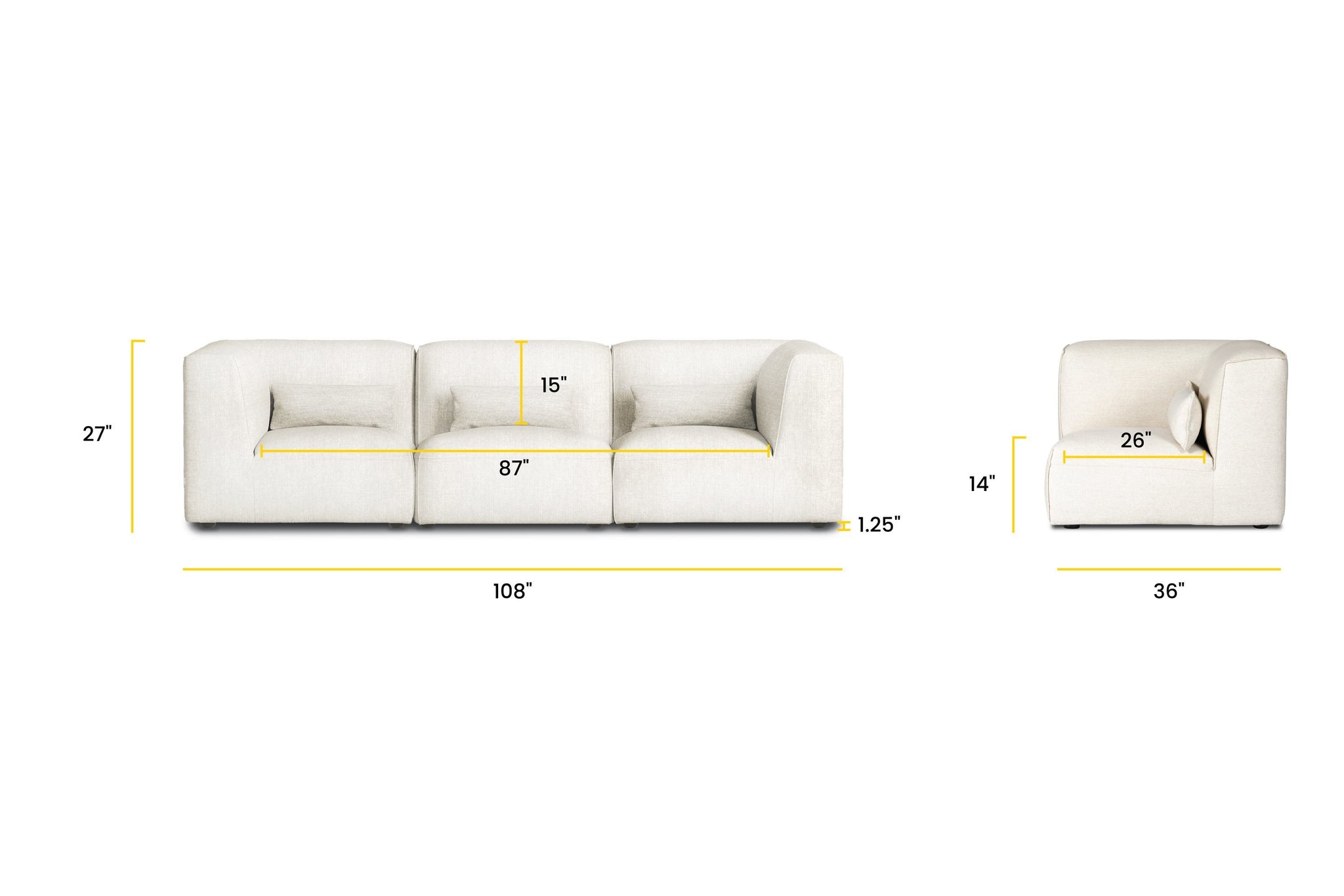 Seat Dimensions:  87"W x 26"D x 14"H
