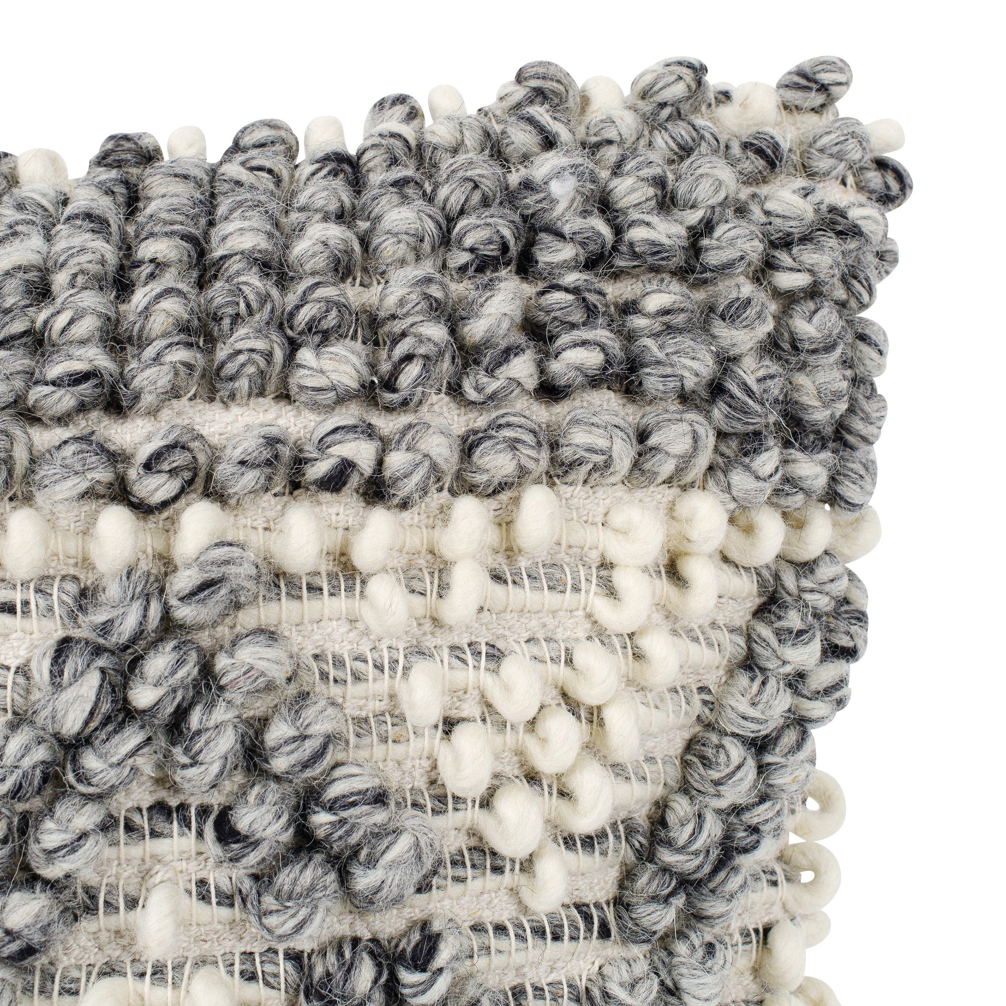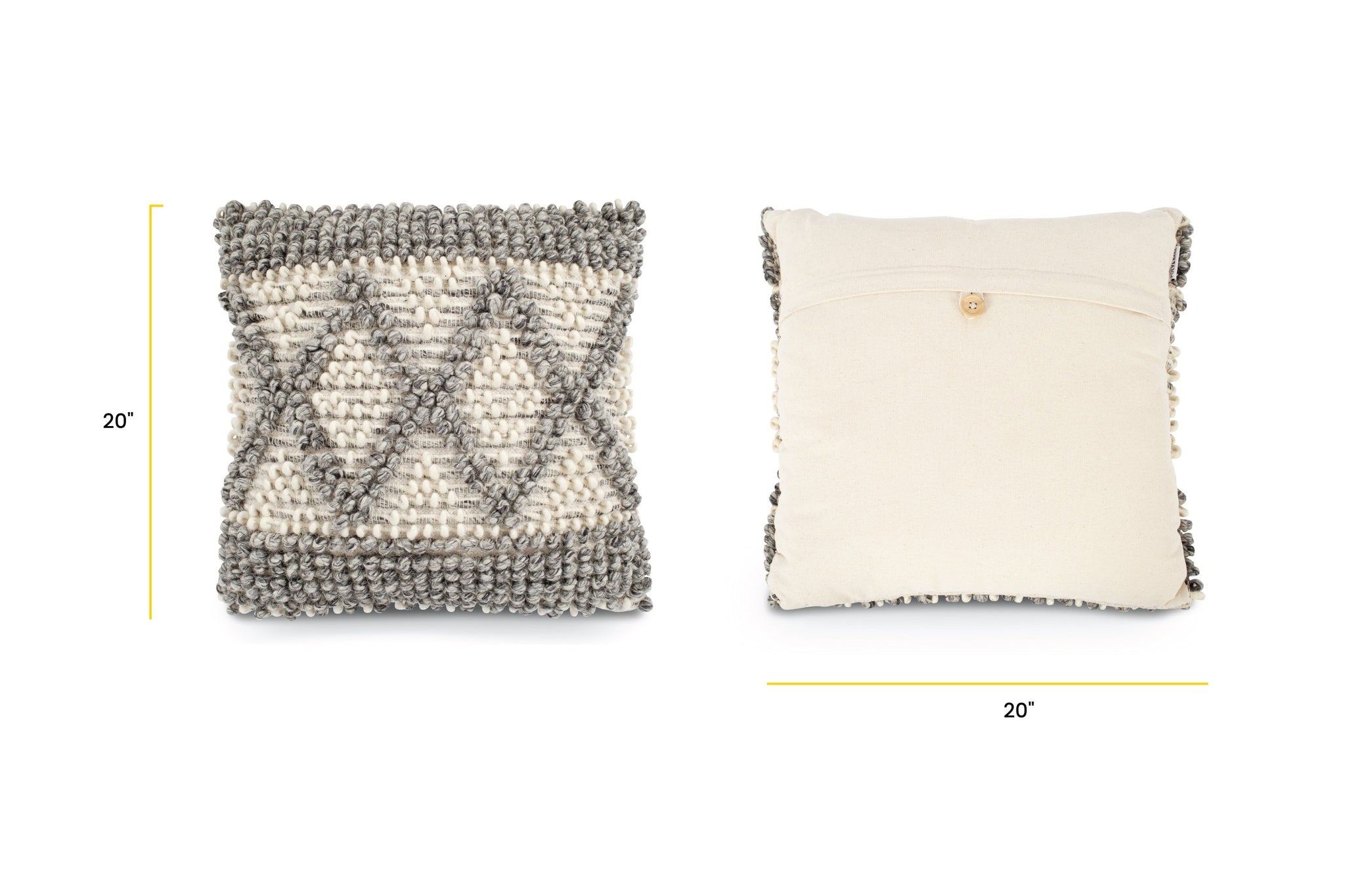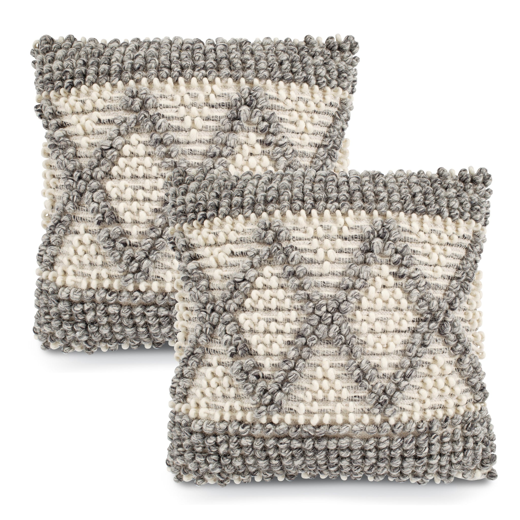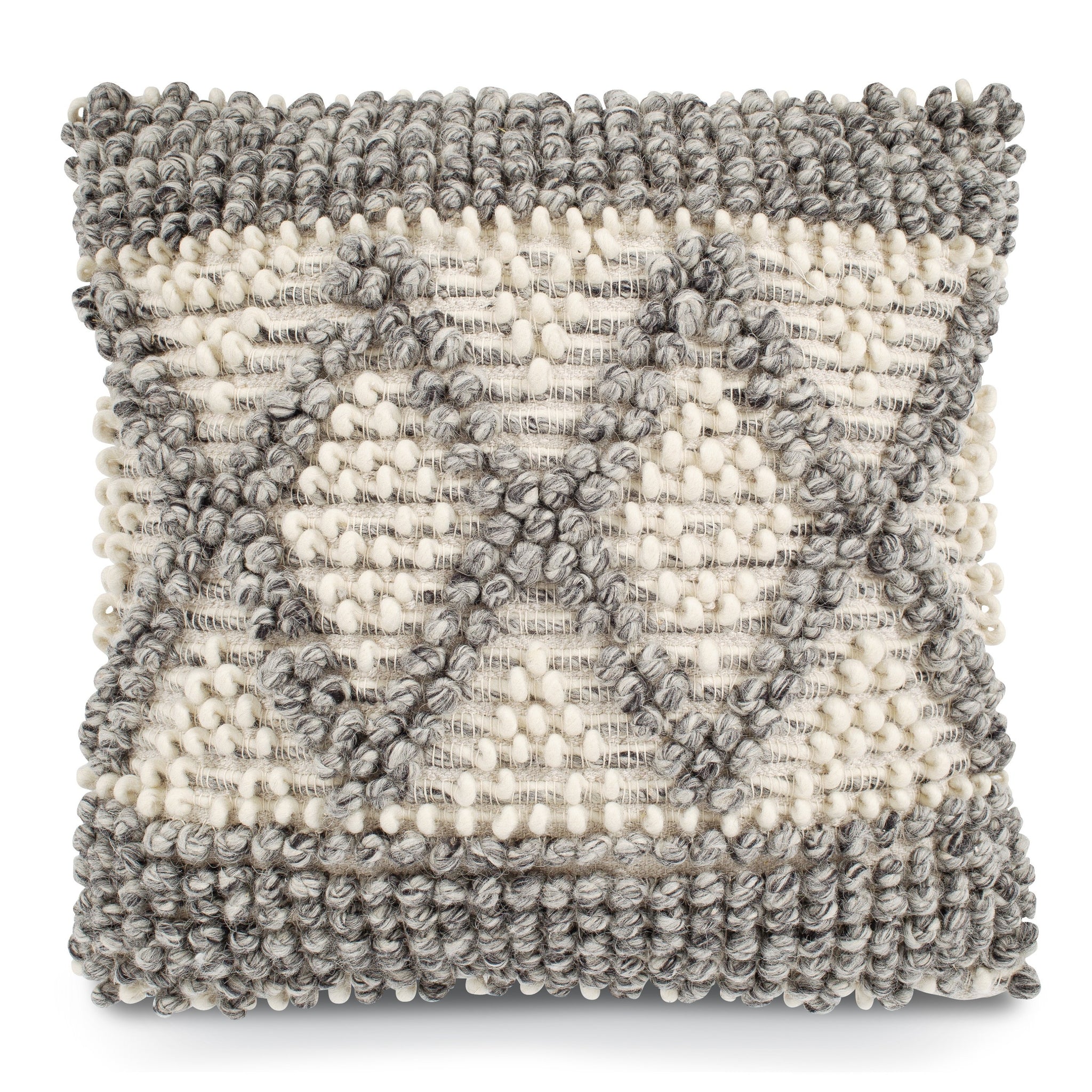 You won’t be able to keep your hands off our Kelis Throw Pillow— it has texture for days! Handcrafted in India, this pillow features a removable cover and lofty polyester fill to retain its chic shape. 100% knotted and chunky wool is giving us all the feels, and the grey and cream diamond design is the perfect punch of polish your bed or sofa has been longing for.