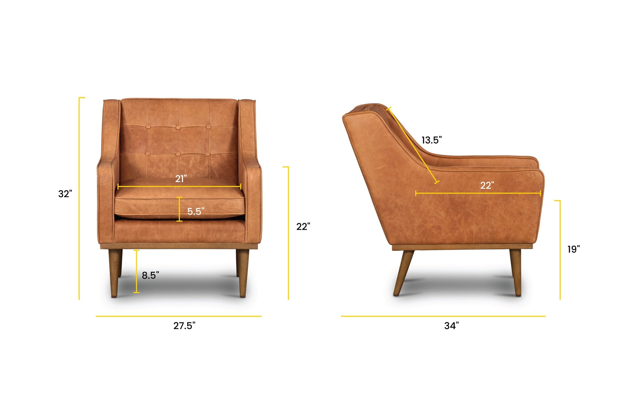 I purchased two of these chairs to go in front of my fireplace. They were delivered today, and I cannot be any more thrilled! They are stunning, and fit the space and our aesthetic perfectly! Everything from the quality, the price, and the delivery time have exceeded my expectations, and I am so happy that I get to enjoy these beautiful chairs on a daily basis! For leather chairs, the price is VERY reasonable. So happy I found Poly & Bark, and I'm sure I will be back for other orders in the future!