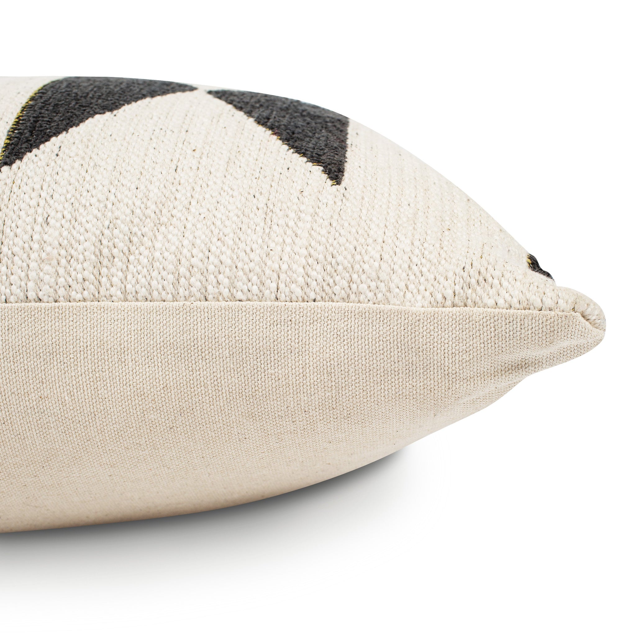 An optical triumph, our Crete Large Lumbar Pillow utilizes bold shapes with black and cream tones to woo the crowd. Skillfully crafted by artisans in India, this beauty features a removable cover and lofty poly fill to fill your space with comfort. The final missing piece of your décor puzzle, this lumbar pillow has earned a spot in your life.