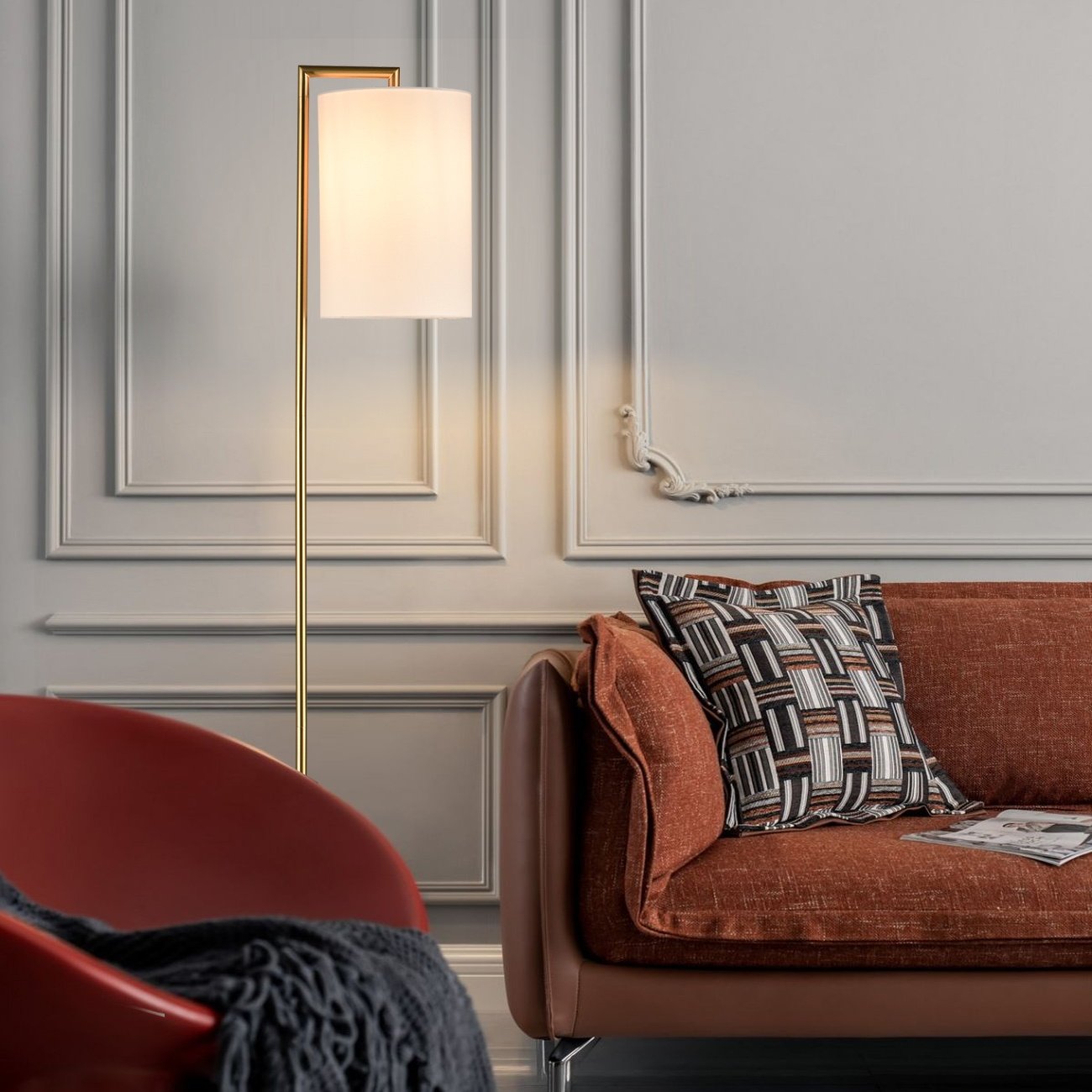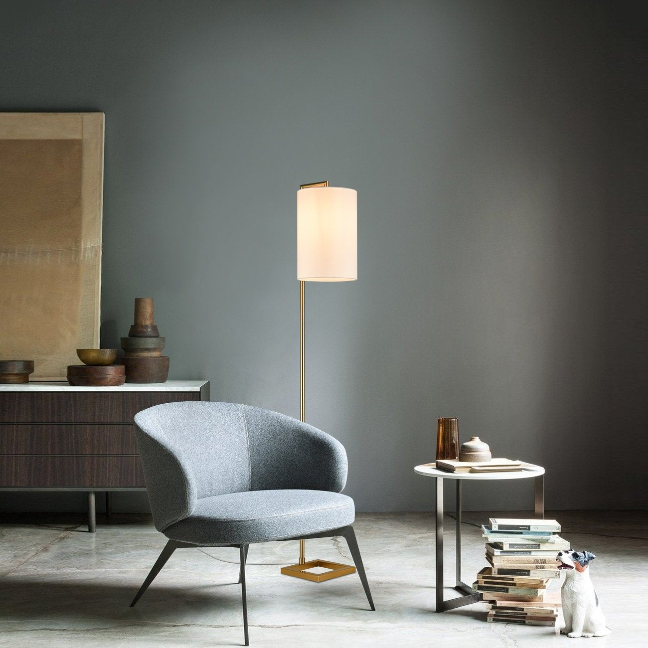 Our Ines Floor Lamp has all the right moves (and angles). Featuring a classic linen drum shade and an abundance of right angles in brushed brass, this floor task lamp is the accent your leather sofa or velvet reading chair has been dreaming of. The linen drum shade diffuses the light effortlessly, while the brushed brass base warms up any abode.