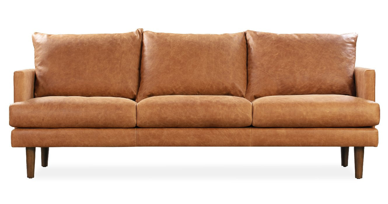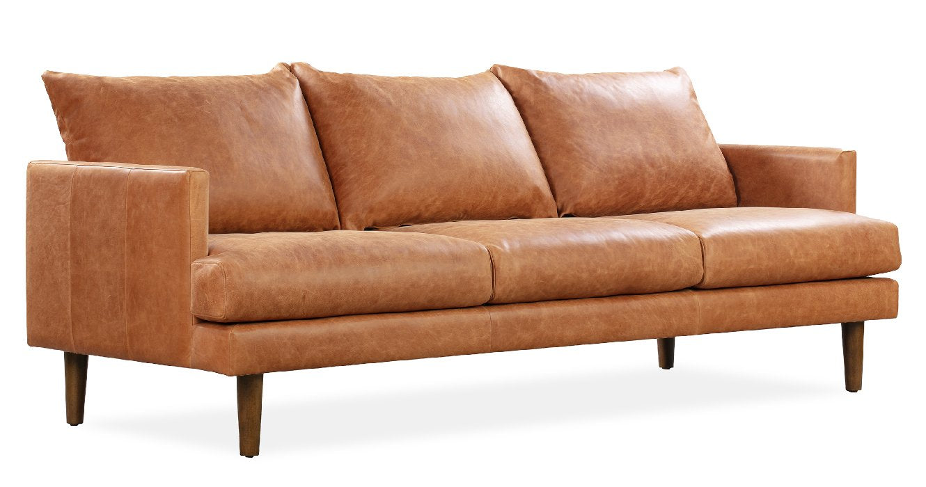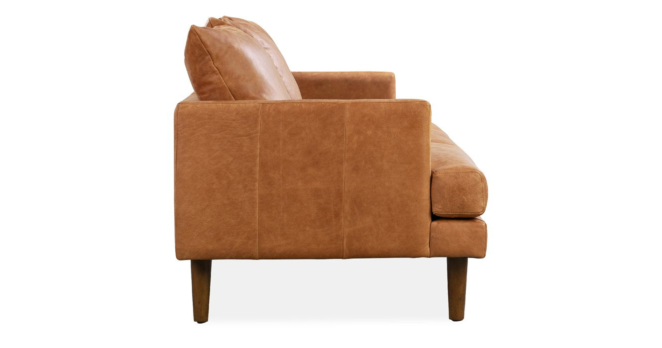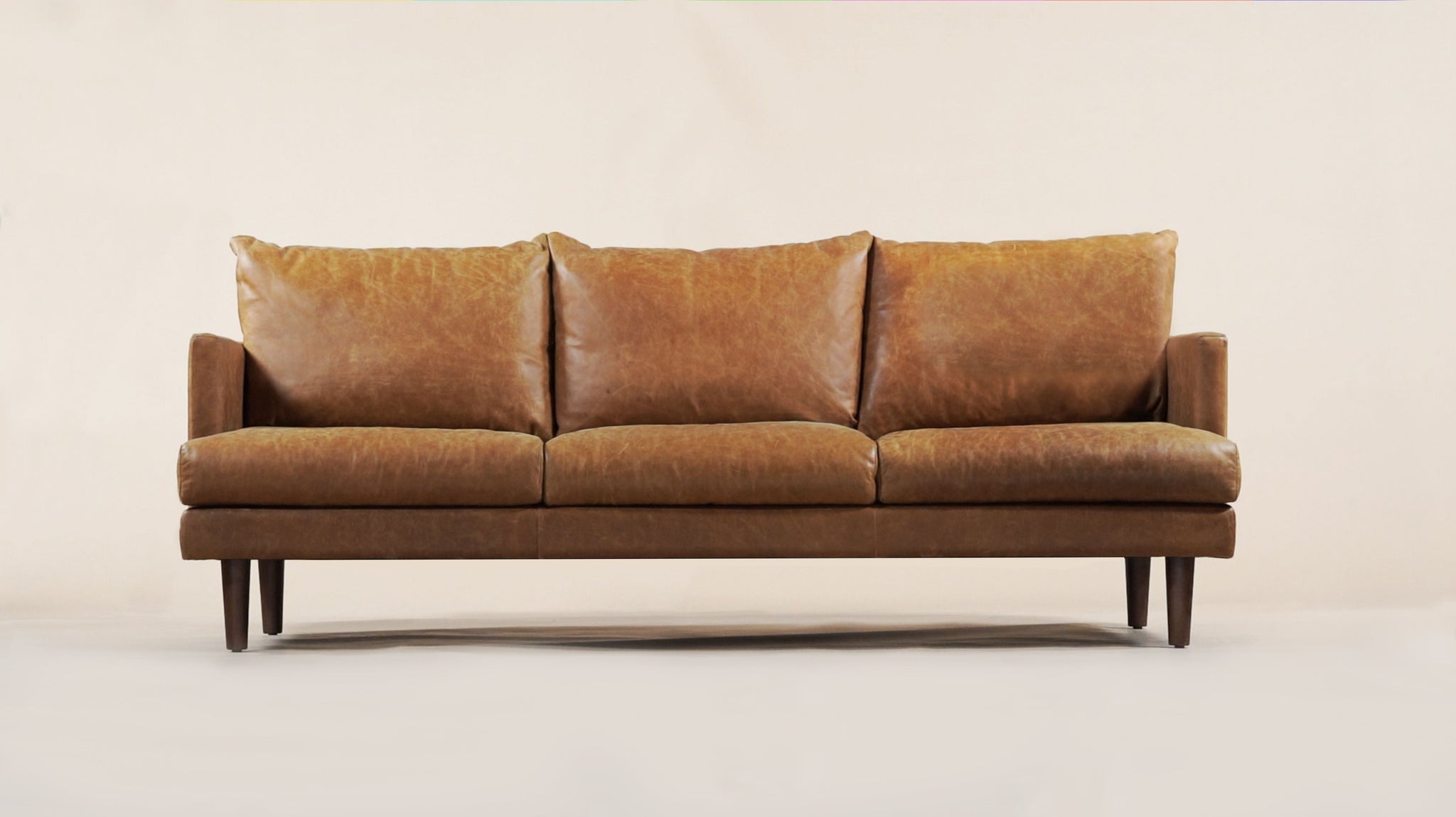 All our leather sofas come in two premium Italian tanned leather options: Full-grain pure-aniline and full-grain Semi-aniline. Pure-aniline leather which comes in the Cognac Tan color is not sanded or pigmented, accentuating the natural beauty of the hide. Pure-aniline leather will scuff and develop into a beautiful vintage patina with use. Our soft semi-aniline leather which includes all other colors, are treated for long-lasting smoothness. Each hide is unique and will vary in depth of color. Read More