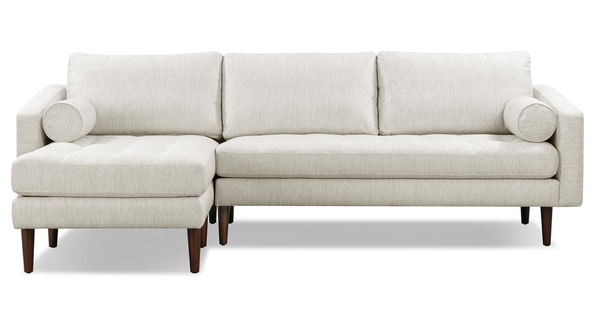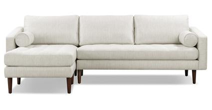 • Materials: 100% Polyester upholstery, Corner blocked solid wood frame, High density foam with polyester filling, Feather down, Solid wood legs