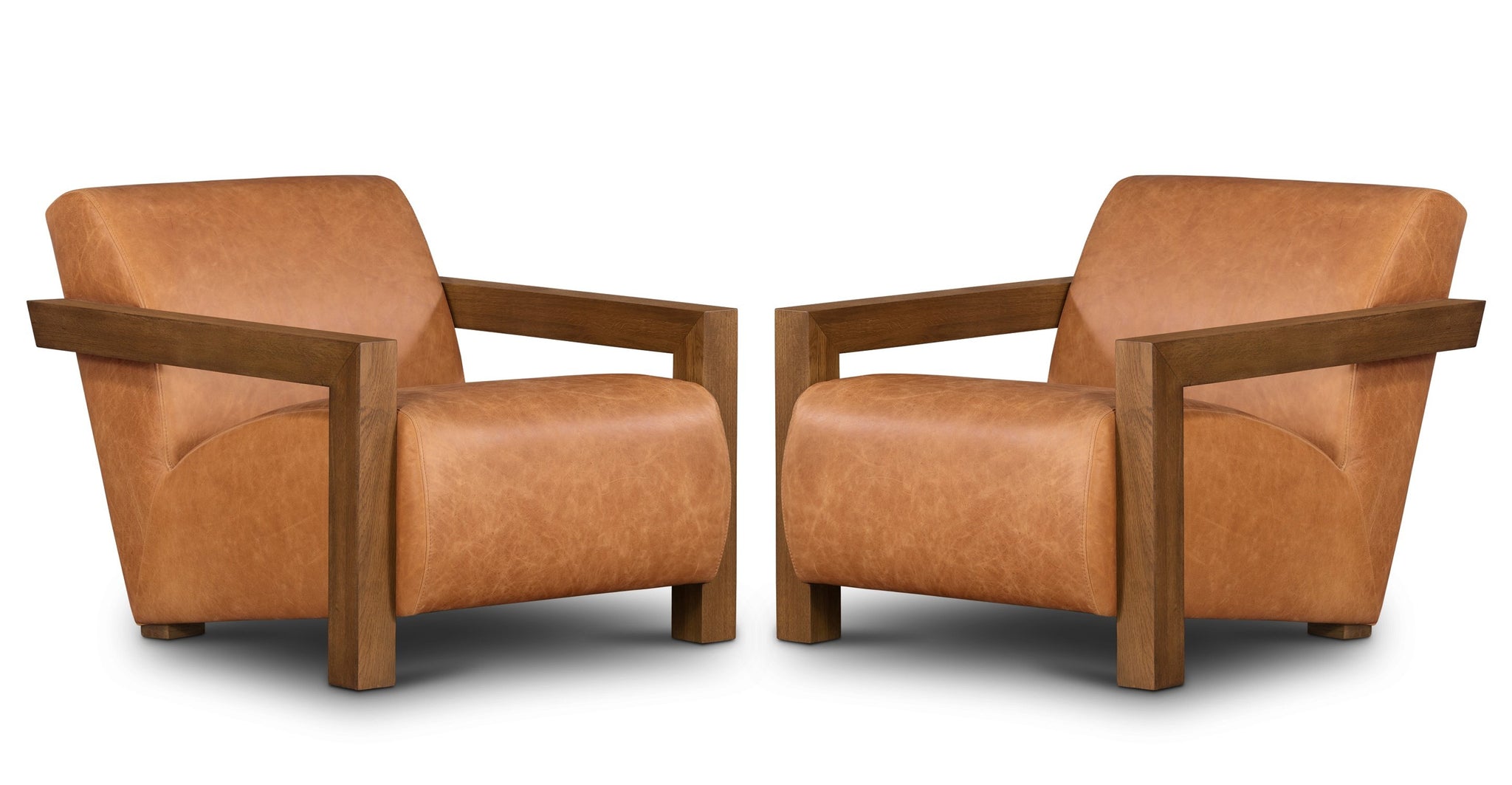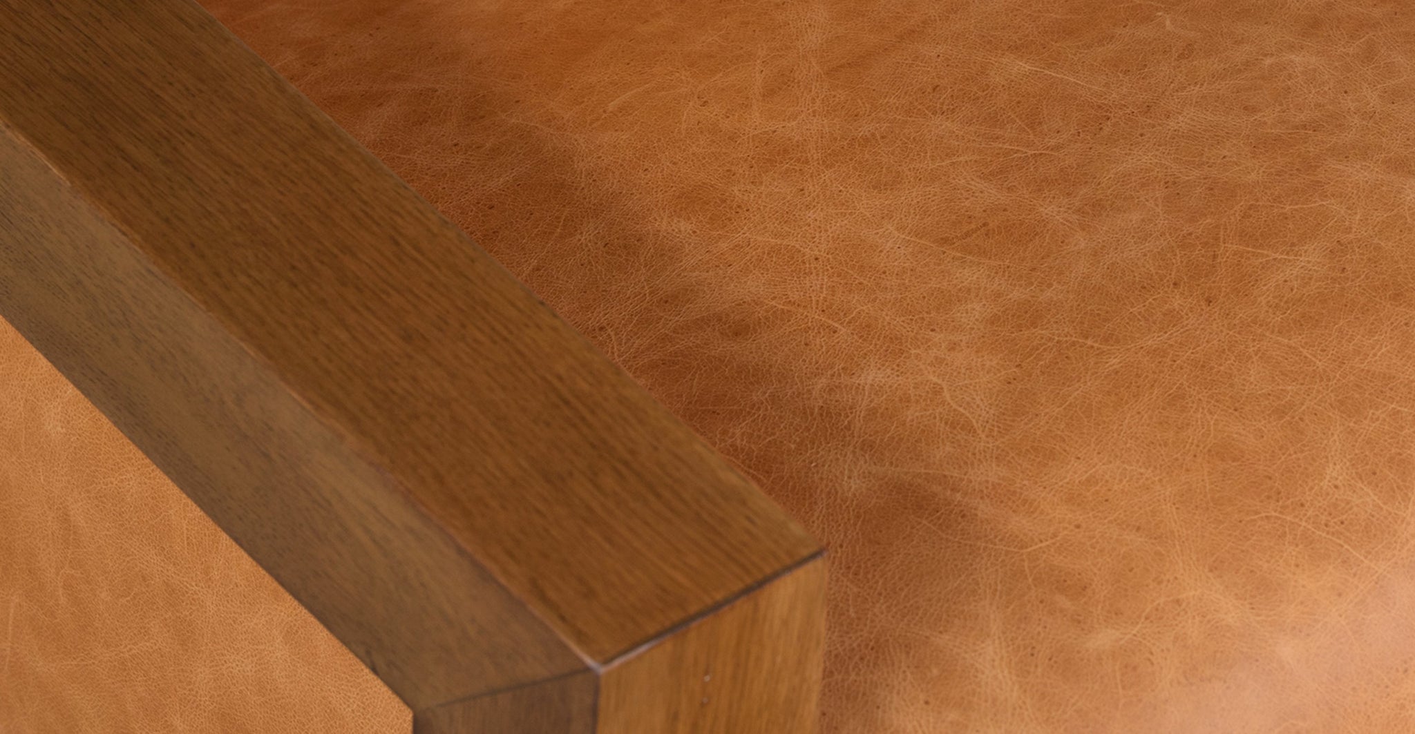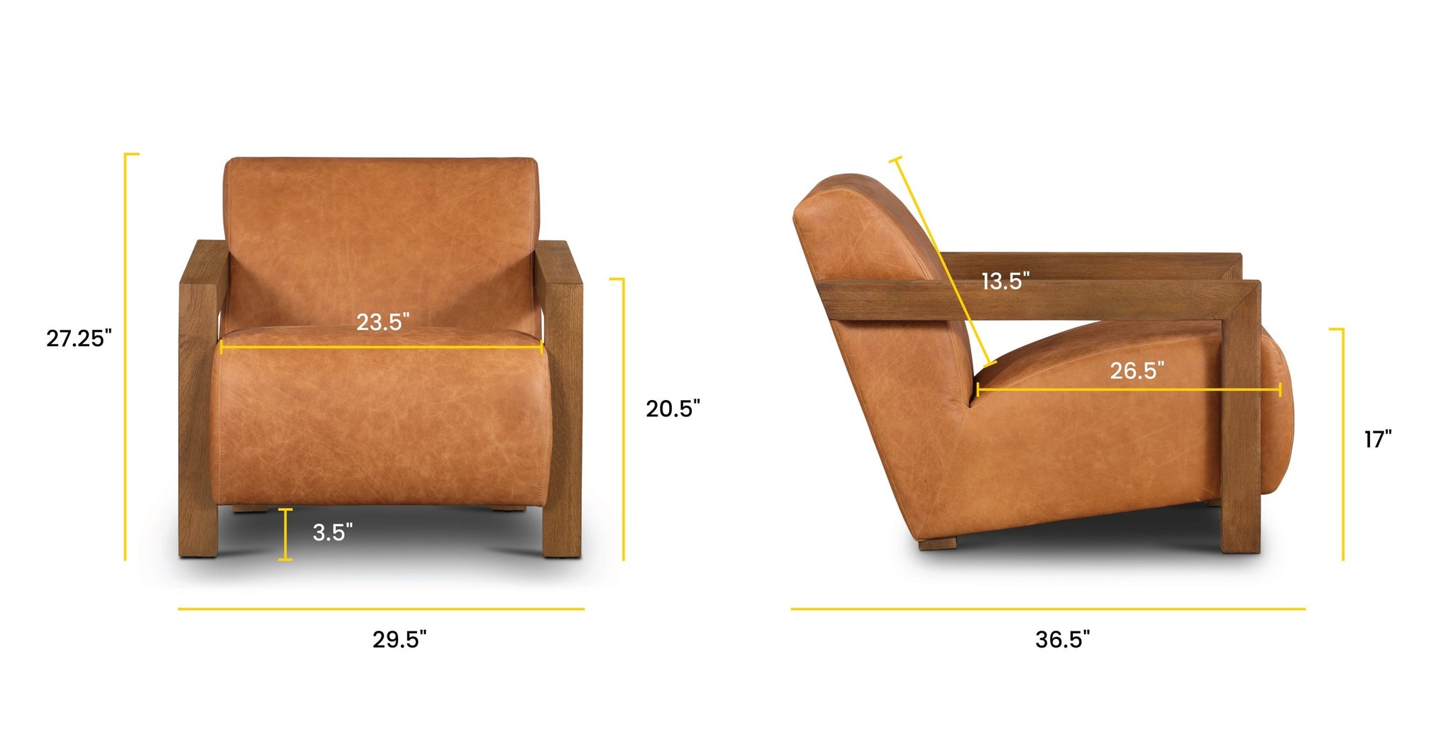 • Materials: Full-grain pure-aniline (cognac tan) dyed leather, Kiln-dried solid oak wood, engineered wood, high-resiliency foam, polyester