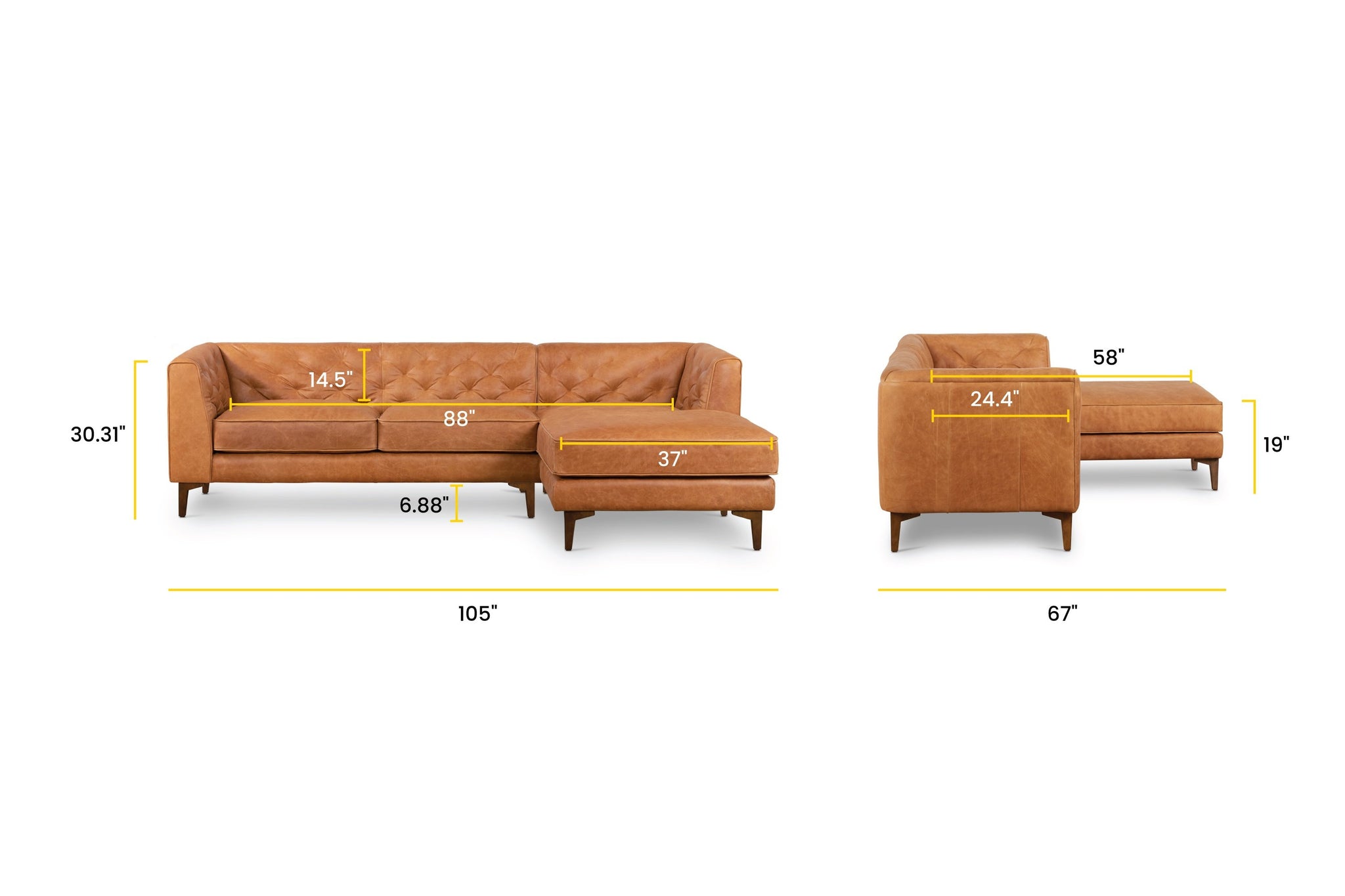 Seating Dimensions: 88"W x 24.4"D (depth until back cushion) x 19"H