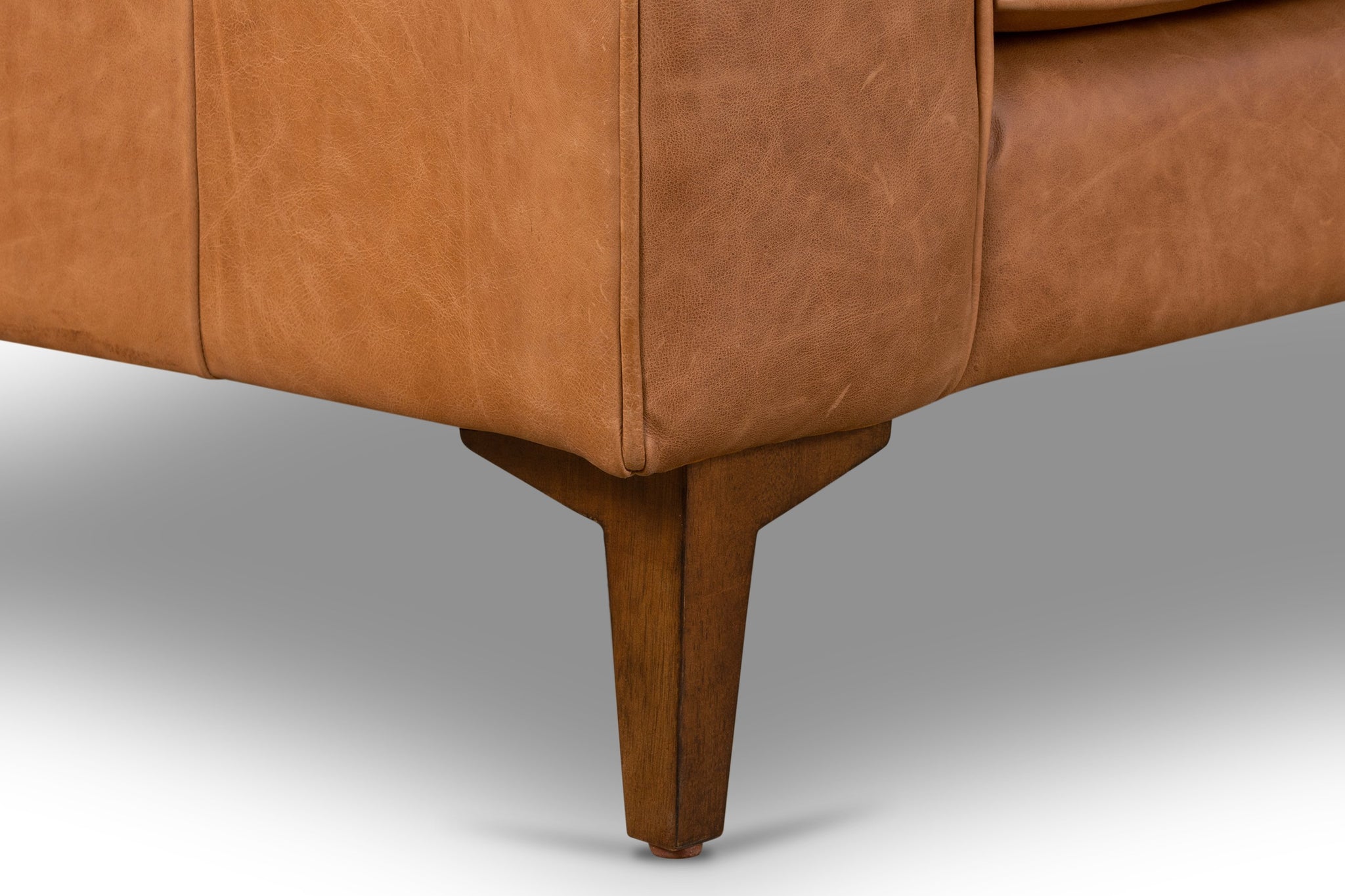 All our leather sofas come in two premium Italian tanned leather options: Full-grain pure-aniline and full-grain Semi-aniline. Pure-aniline leather which comes in the Cognac Tan color is not sanded or pigmented, accentuating the natural beauty of the hide. Pure-aniline leather will scuff and develop into a beautiful vintage patina with use. Our soft semi-aniline leather which includes all other colors, are treated for long-lasting smoothness. Each hide is unique and will vary in depth of color. Read More