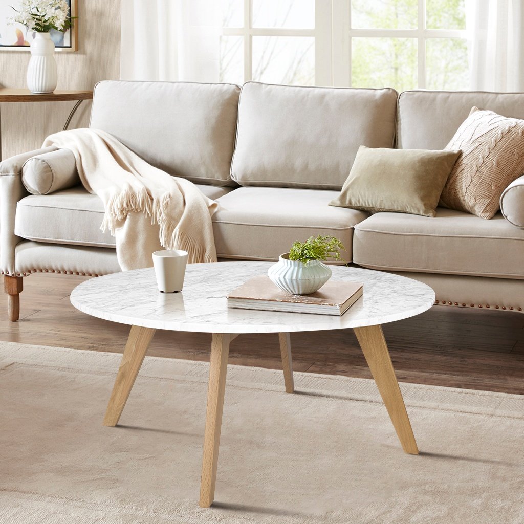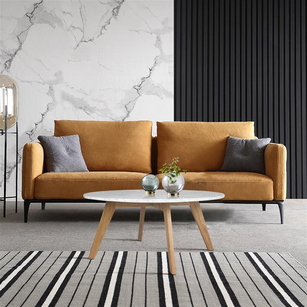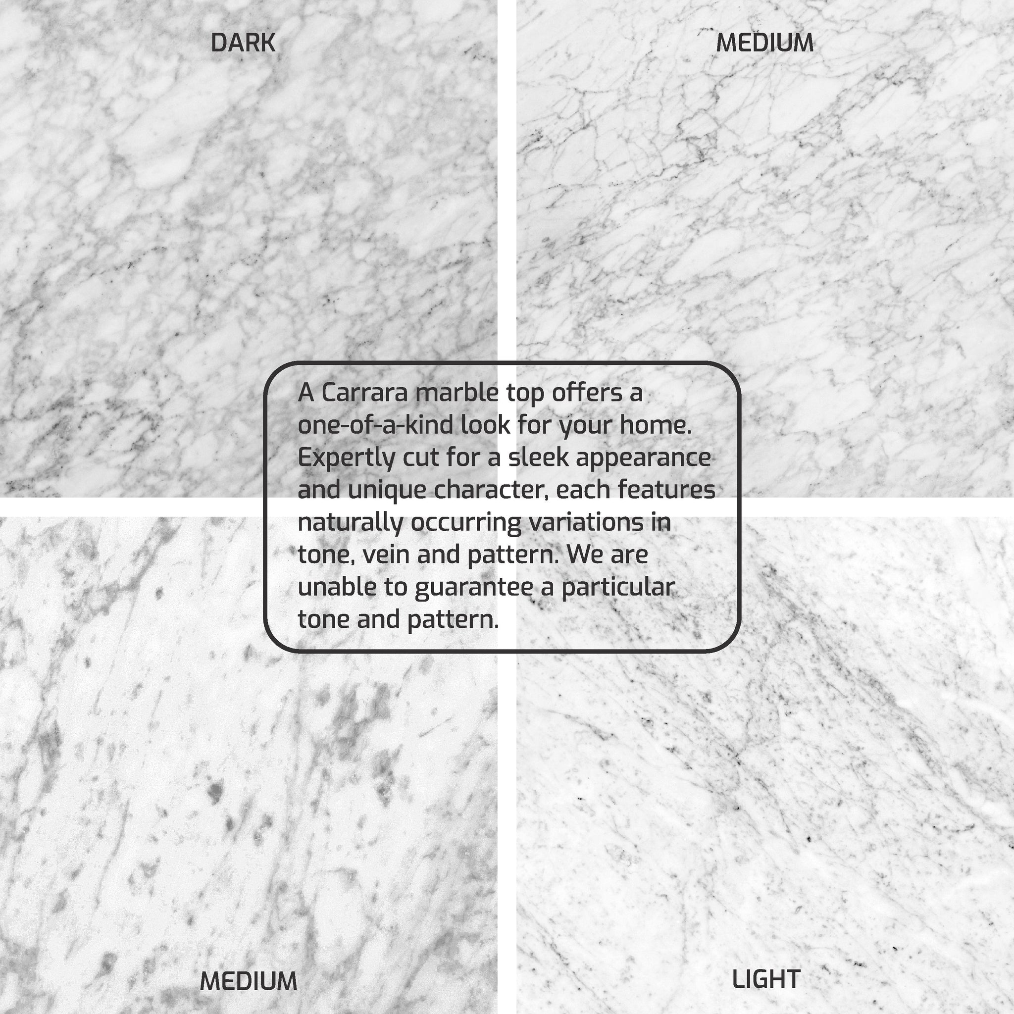 • Materials: Top: Sealed Italian Carrara marble 14mm thickness, Legs: American White Oak with Natural or Walnut Finish