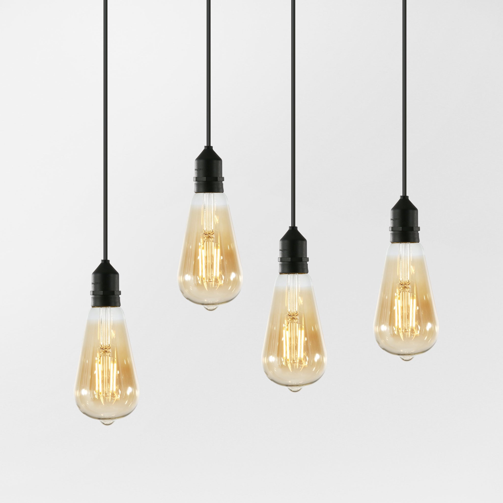 • Exposed filament and amber glass combine to produce a vintage look with abundant warmth.