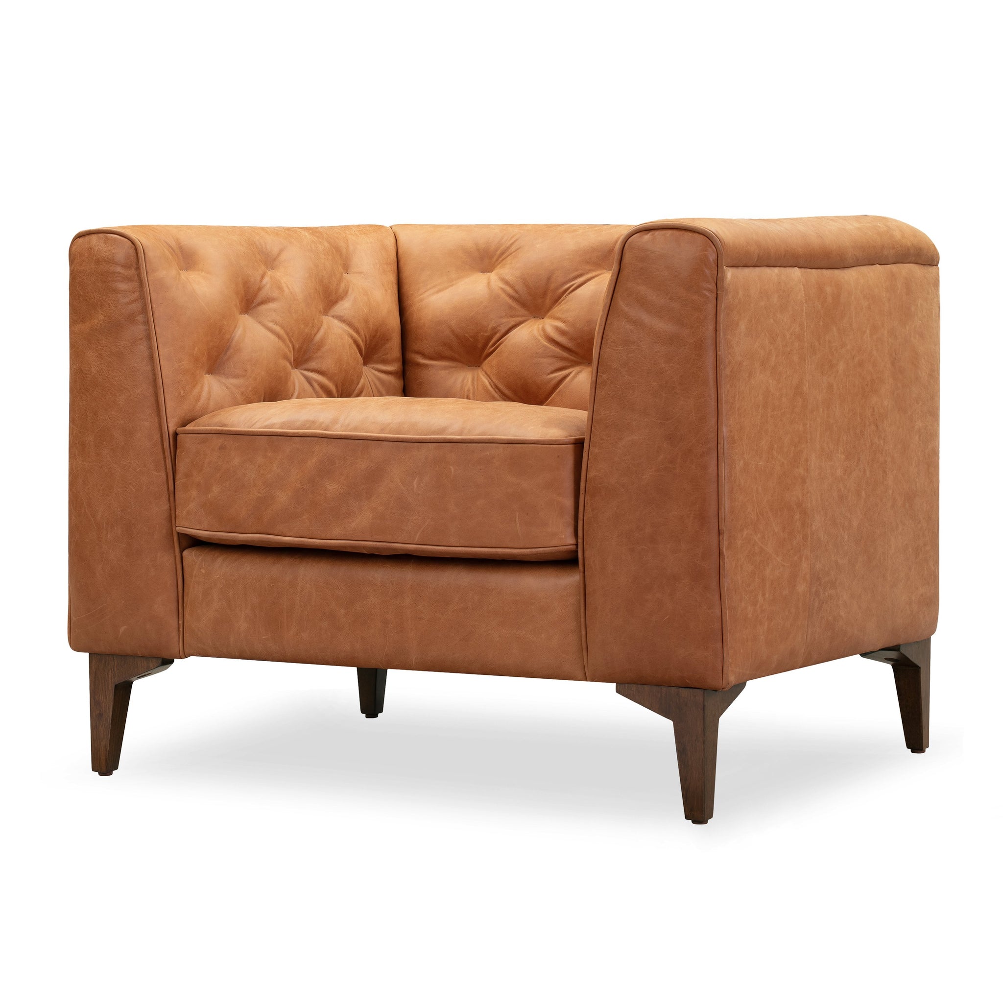 • Materials: Full-grain pure-aniline dyed leather (Cognac Tan) or Semi-aniline dyed leather (other colors), Kiln dried solid wood, high density foam, polyester, duck feathers