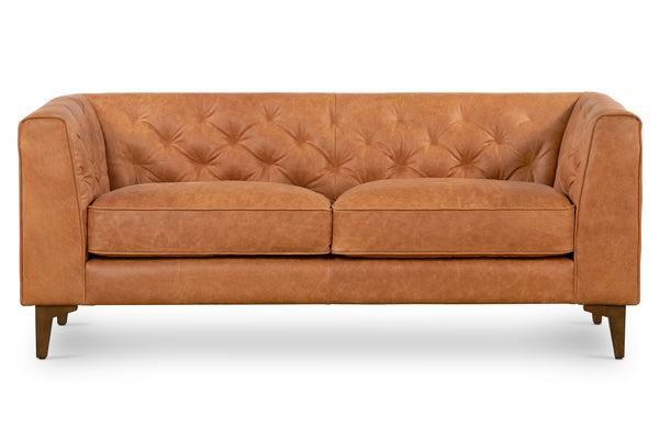 All our leather sofas come in two premium Italian tanned leather options: Full-grain pure-aniline and full-grain Semi-aniline. Pure-aniline leather which comes in the Cognac Tan color is not sanded or pigmented, accentuating the natural beauty of the hide. Pure-aniline leather will scuff and develop into a beautiful vintage patina with use. Our soft semi-aniline leather which includes all other colors, are treated for long-lasting smoothness. Each hide is unique and will vary in depth of color. Read More